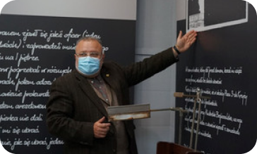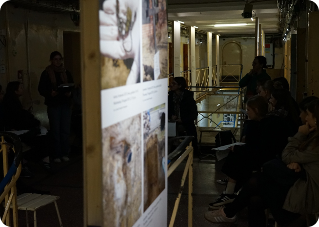 Amarantowa linia biegnie od bramy przez kolejne pomieszczenia naszego Muzeum, prowadząc przez wystawę i kolejne 145 metrów, które wiodą do X Pawilonu, celi arcybiskupa i mokrego karceru, niemych świadków kaźni dokonywanej na Baraniaku.